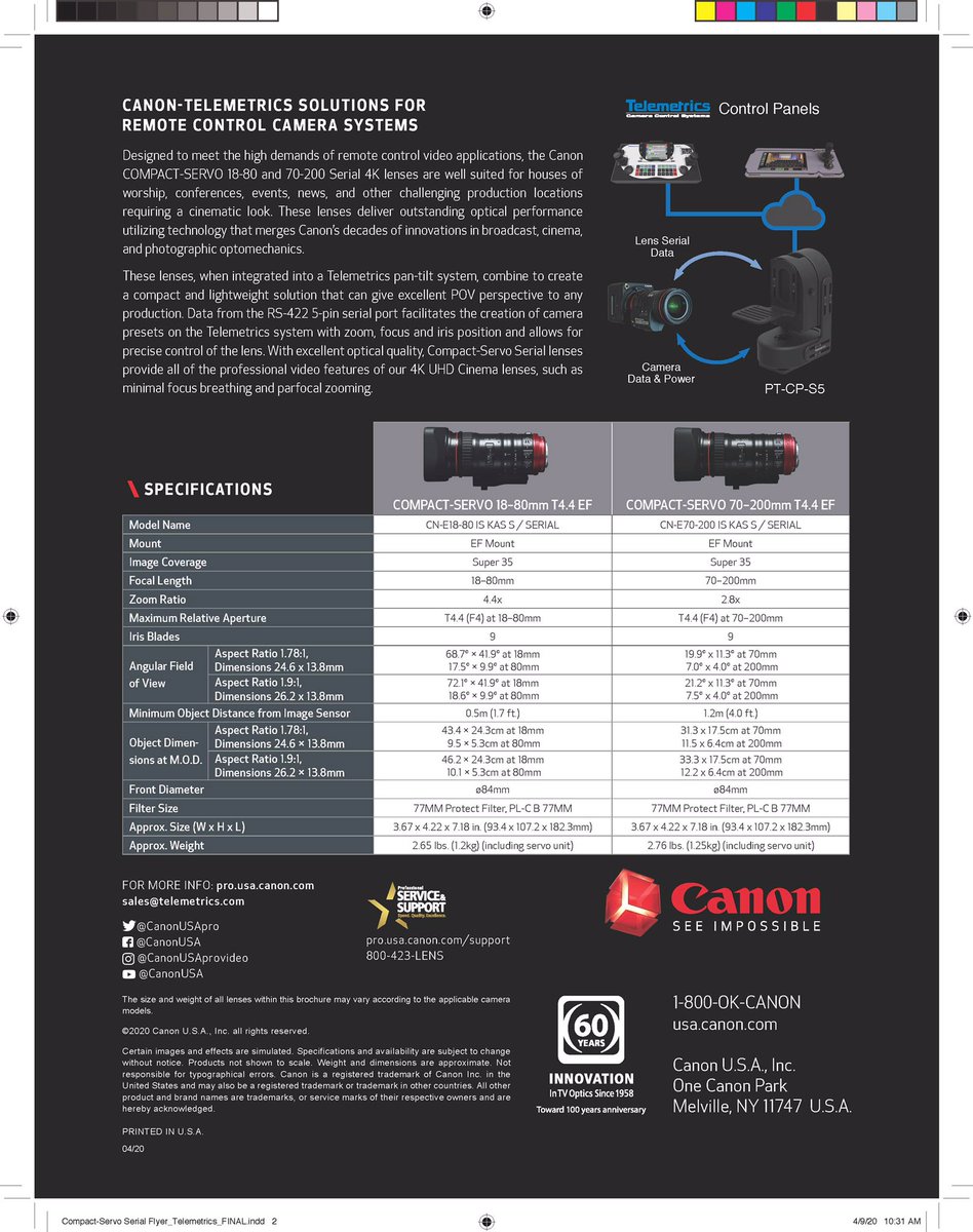Our PT-CP-S5 robotic head outfitted with @Canon’s ME200 camera and your choice of Serial Compact Servo lens provides a powerful combination that is ideal for virtual sets, augmented reality and VFX, and other types of POV shots. #Canon #CompactServolens #remoteproduction